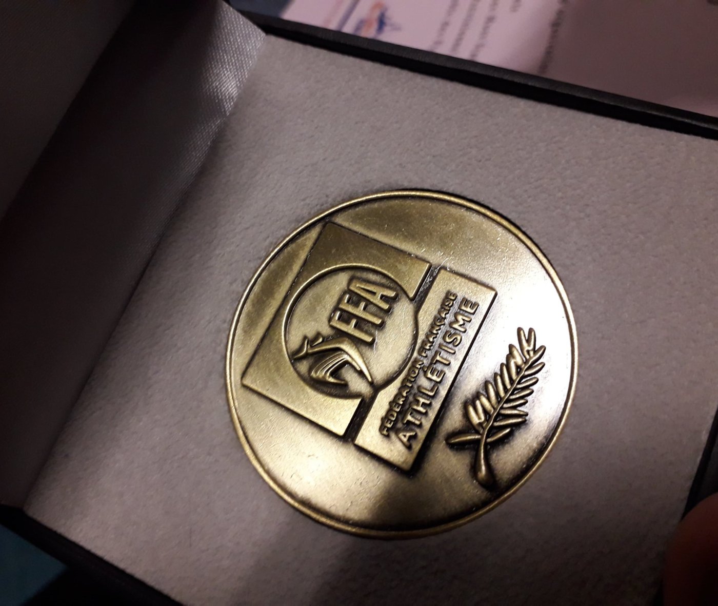 Et c’est à cette occasion que le Président de la ligue Auvergne Rhône Alpes d’athlétisme M. Marcel FERRARI a remis à Philippe la Médaille de bronze de la FFA (Fédération Francaise d’Athlétisme) pour son engagement et son dévouement.