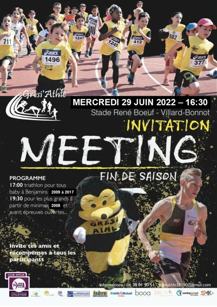 Notre meeting de fin de saison a regroupé hier pas moins d’une centaine d’athlètes tout au long de l’après-midi jusqu’en début de soirée….